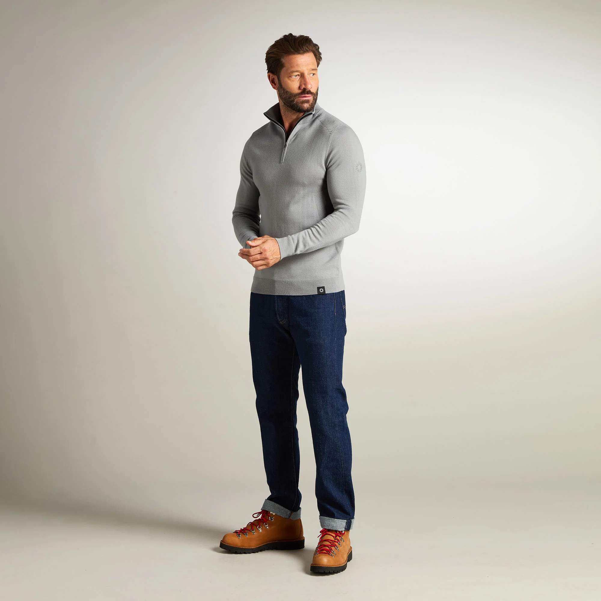 The Docker represents a refined evolution of the 1/4 zip sweater, featuring a Merino yarn and reinforced shoulder ribs for enhanced comfort and practicality. Ideal for layering, this versatile sweater can be worn over a shirt or as a first layer. The Merino wool of the Docker delivers a soft experience and effectively aids in regulating body temperature. This sharp and tailored sweater has the Shackleton nine-pointed star embroidered on the left sleeve.