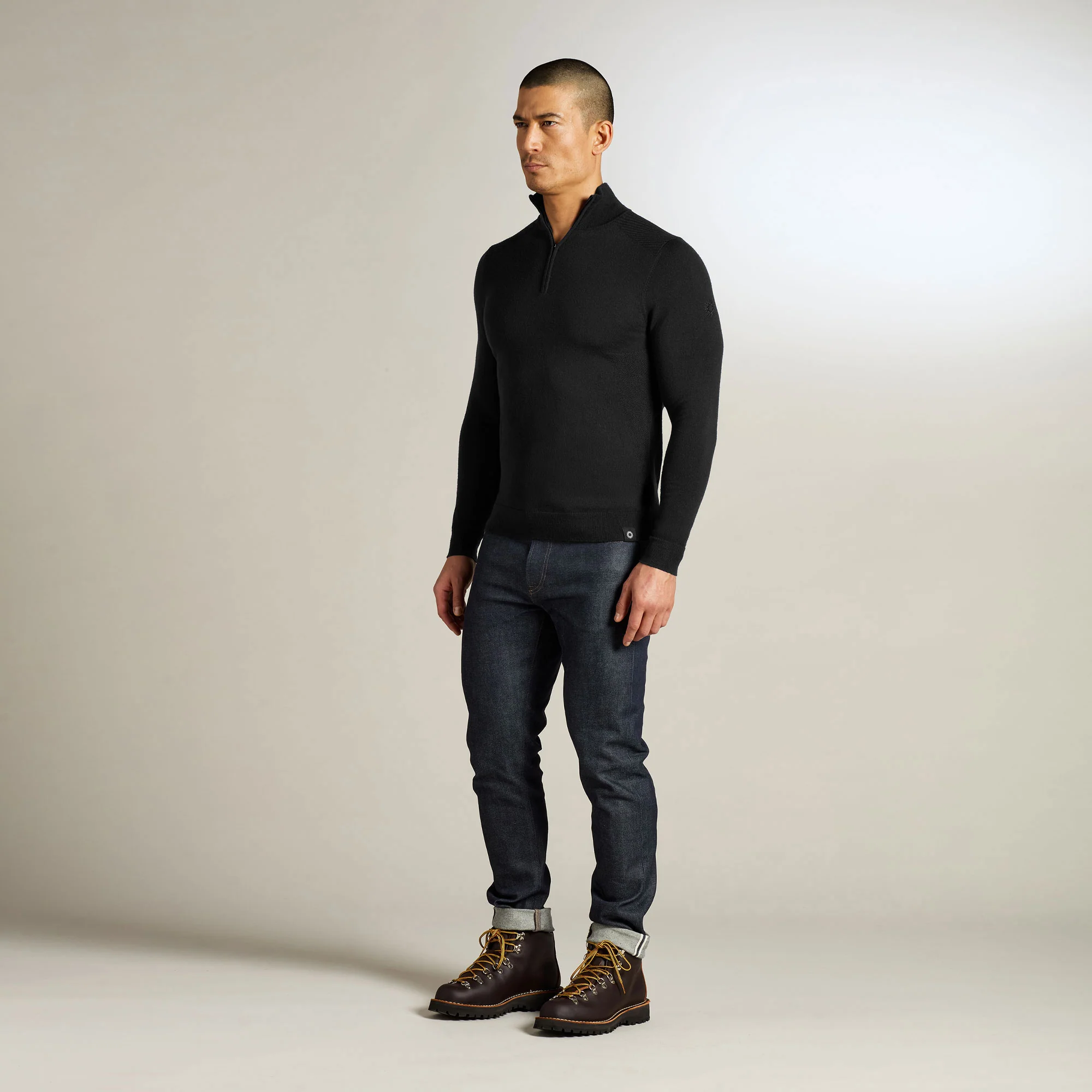 The Docker represents a refined evolution of the 1/4 zip sweater, featuring a Merino yarn and reinforced shoulder ribs for enhanced comfort and practicality. Ideal for layering, this versatile sweater can be worn over a shirt or as a first layer. The Merino wool of the Docker delivers a soft experience and effectively aids in regulating body temperature. This sharp and tailored sweater has the Shackleton nine-pointed star embroidered on the left sleeve.