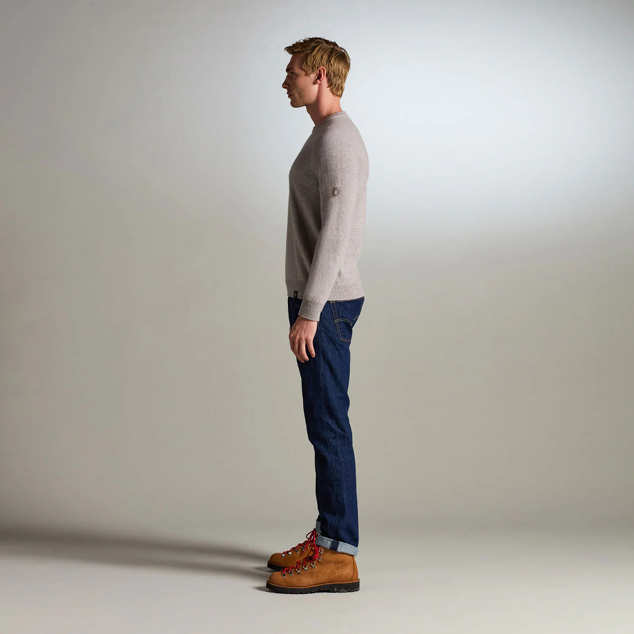 Its 12-gauge seamless knit construction makes this mid-weight sweater extremely comfortable by eliminating friction as well as increasing durability. The light moss-stitch on the chest, back and upper arms is inspired by heritage knits worn by adventurers a century ago. Wear next to the skin or layered over a T-shirt. Yarn is RWS (Responsible Wool Standard) certified.