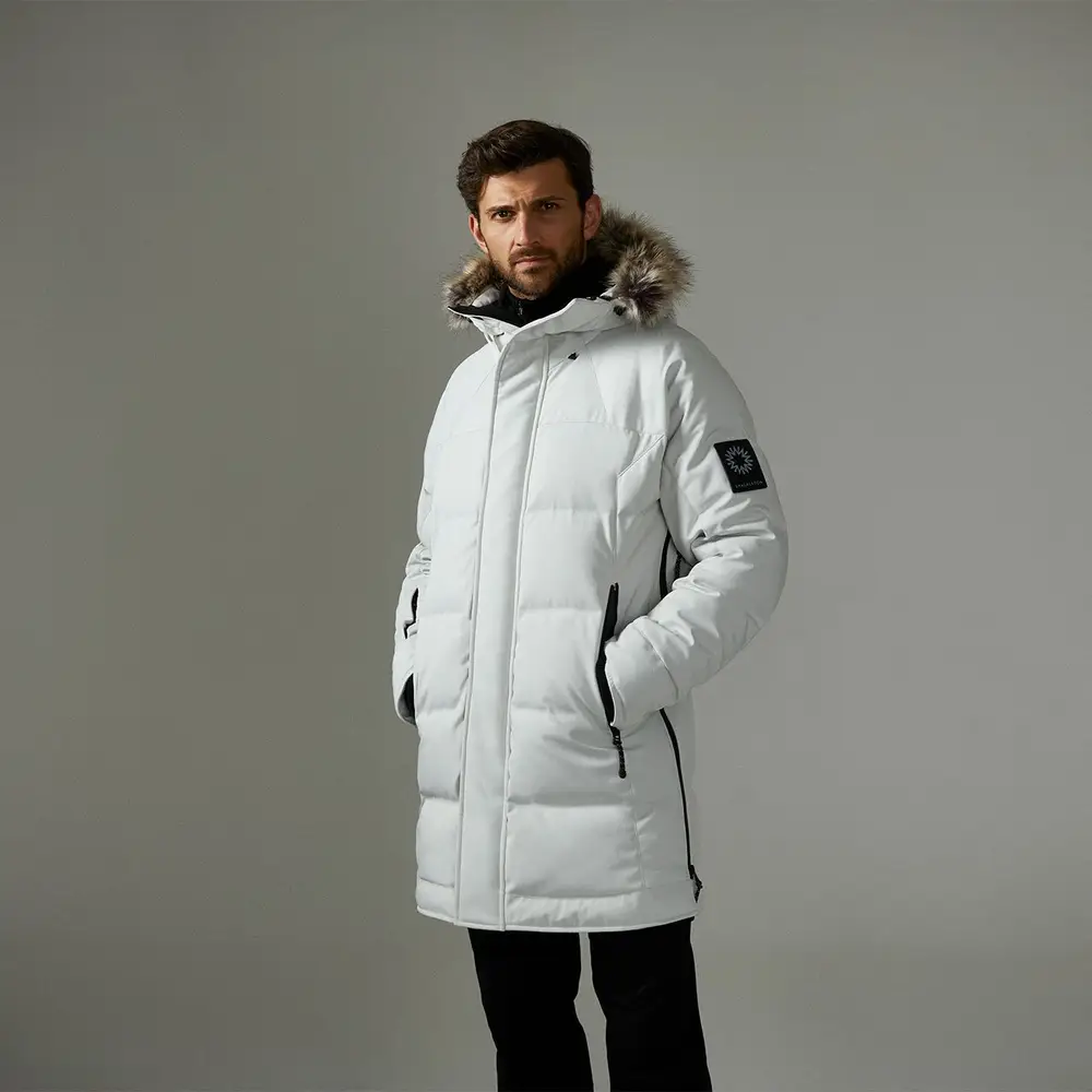 Tailored sleeve fit, ergonomic cuffs, big alpine front pockets with double-lined micro fleece and an inner zipped security pocket complete a smart and assured parka that is more than capable of handling all conditions, in all the world’s coldest places.